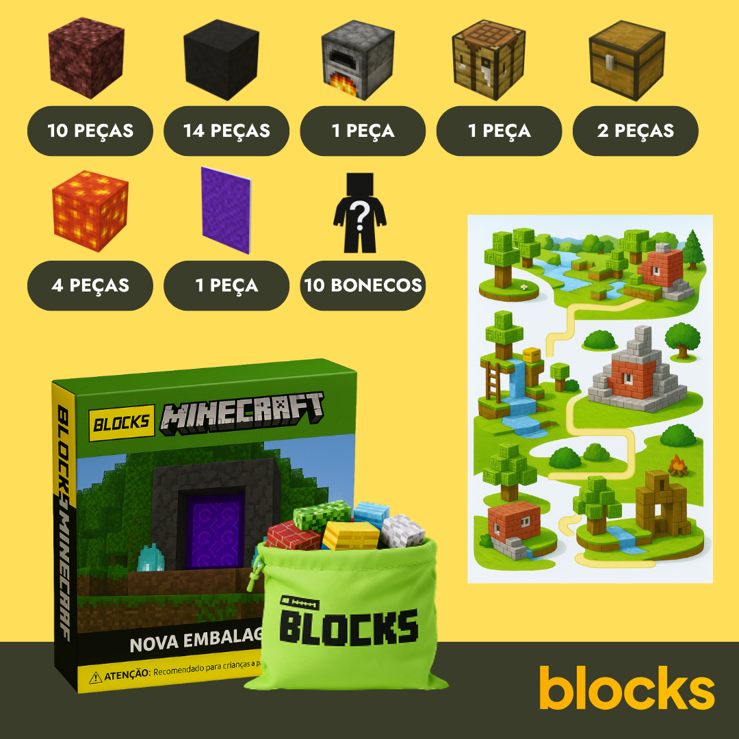 Esquenta Dia das Crianças Minecraft - 48/64/75 peças [+5 Personagens GRÁTIS]
