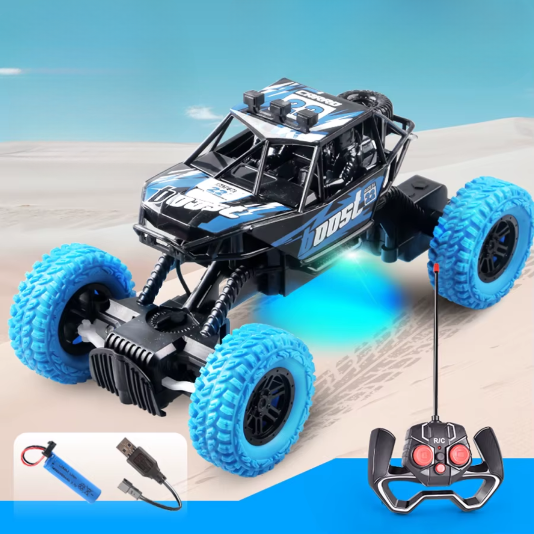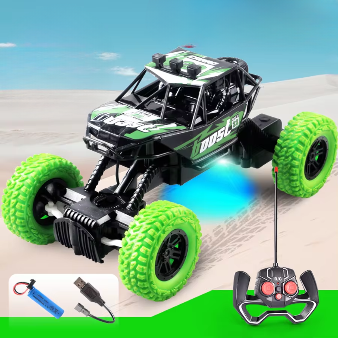 Design off-road resistente e durável: Este veículo é fabricado com materiais de alta qualidade que permitem suportar impactos, quedas e condições extremas em diferentes tipos de terreno, como areia, pedras, lama e asfalto.
