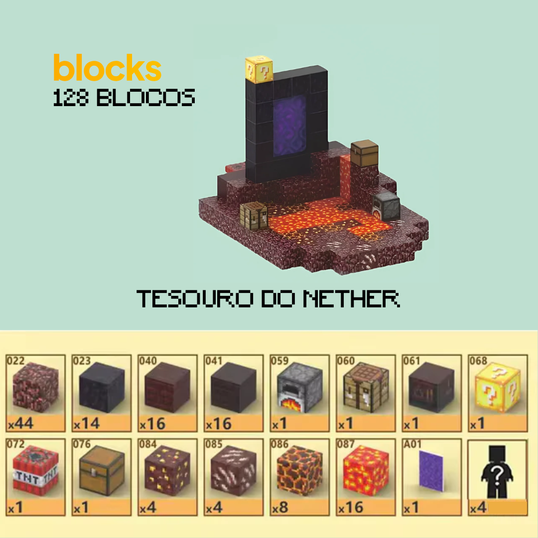 Esquenta Dia Das Crianças Portal do Nether Minecraft - 32 / 48 / 77 Peças (+5 Bonecos)